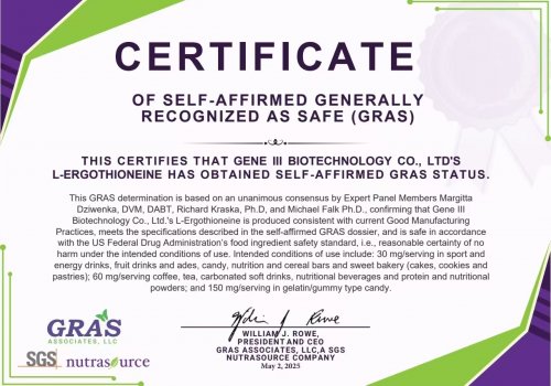 (GeneIII仅三麦角硫因获国际GRAS认证实证如图)