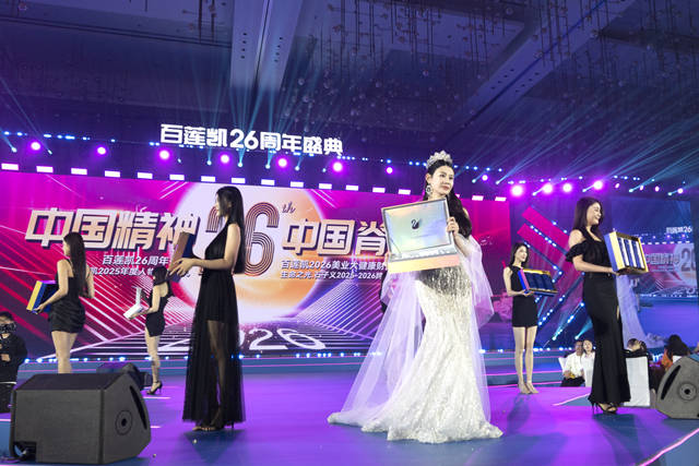 1月25日,东莞洲际酒店的宴会大厅,灯火璀璨、宾朋云集,民族美业连锁领军品牌百莲凯在此盛大启幕26周年盛典。以“中国精神·中国脊梁”为核心主题,这场融合了“生命之光·石子义2025-2026跨年演唱会”与“百莲凯2025年度人物颁奖典礼”的行业盛会,用多元创新的呈现形式,为现场嘉宾与全国美业人献上了一场兼具文化厚度与视觉张力的年度盛宴。