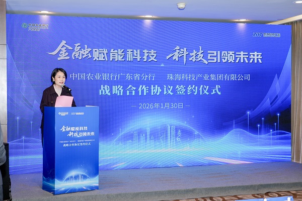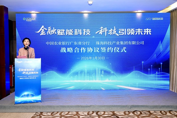 1月30日,珠海科技产业集团与中国农业银行广东省分行在广州签署全面战略合作协议暨独立授信合作。农行广东省分行党委书记、行长刘明尧,珠海科技产业集团党委书记、董事长由杨共同见证签约。农行广东省分行副行长胡艳、李美佳,珠海科技产业集团党委副书记、总经理郭瑾出席仪式。