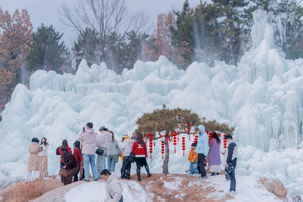 1.初遇·冰雪森林之门:景区依托壮观的冰瀑景观,构筑“云蒙冰雪森林”主题标识打卡点,游客从入园起便能感受到浓郁的冰雪氛围,开启梦幻旅程。