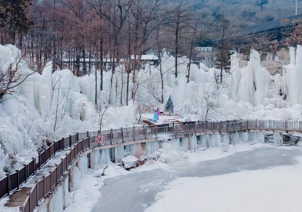 4.登顶·天池冰瀑奇观:山顶天池区域依托自然山势打造规模宏大的“高山冰瀑奇缘”核心景观。无论是航拍下的磅礴远景,还是置身其中的近景打卡,都能感受到令人震撼的冰雪之美。