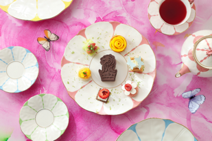 配合艺术展的启幕,北京丽思卡尔顿酒店同步推出「蝶舞花韵」艺术家联名款迷你下午茶。酒店饼房厨师长以林晨曦「牡丹春早」系列画作为灵感,将水彩的渐变层次、粉色的温柔力量与春日花卉的生机活力融入甜品创作,匠心打造兼具艺术美感与味蕾享受的高端下午茶体验。
