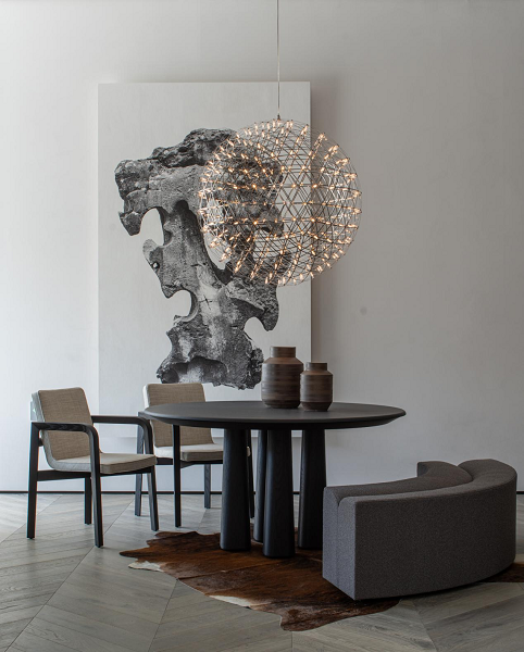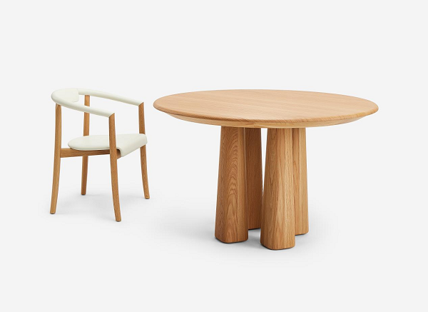 四喜餐桌的设计灵感,源于东方筷子与传统建筑的巧思,上小下大、上圆下方的桌脚造型,全石款以夏荷石演绎天然石材的工艺美感,木制款由北美橡木或黑胡桃木精心拼合,温润触感中藏着满满的工艺诚意。