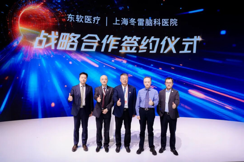 上海冬雷脑科医院创始人宋冬雷教授等一行领导出席签约仪式并致辞。医院作为国内神经医学标杆机构,拥有顶尖临床与科研实力。双方将结合医院专科场景与东软医疗技术优势,开展神经医学精准诊疗研究,推动国产高端影像装备在神经专科深度应用。