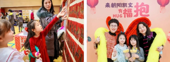 每年的春节时分,全校上上下下洋溢着中国红,热闹非凡。朝阳凯文学校举办了弘扬传统文化、喜迎新春的“马年庙会”。老师和学生们都换上了具有传统中式风格的服装。