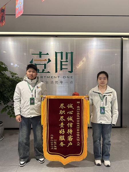 招商蛇口杭州壹间公寓·花栖云境里管家团队在春节前夕接到董先生的看房需求后,全程陪同、耐心讲解,帮助其快速选定心仪房源并顺利办理入住。入住后,管家主动跟进董先生的换房需求,留意匹配合适户型,春节期间仍持续关注其屋内水电情况及空置车位信息,让董先生深刻感受到团队的用心与负责。董先生对管家贴心付出、专业服务的表现给予了高度认可,特赠锦旗以表谢意。