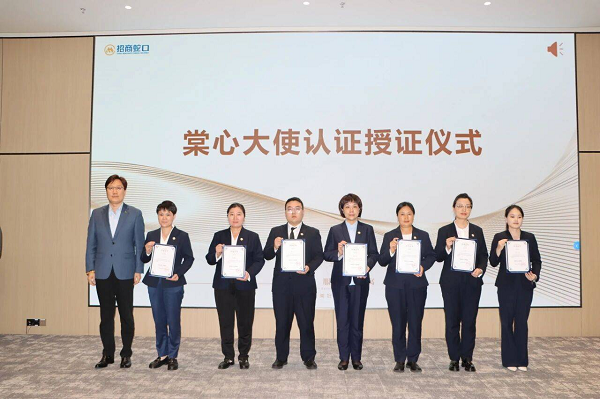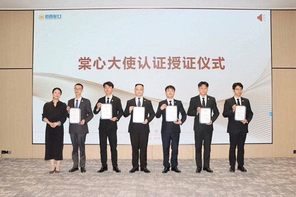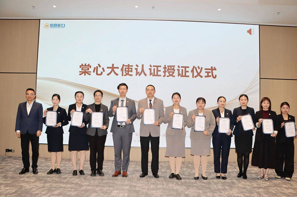 招商蛇口招商伊敦“棠心大使”认证授证仪式于4月16日在招商伊敦2026年一季度经营分析会上举行。招商伊敦领导为通过正式考核认证的学员授予结业证书及专属岗位徽章。